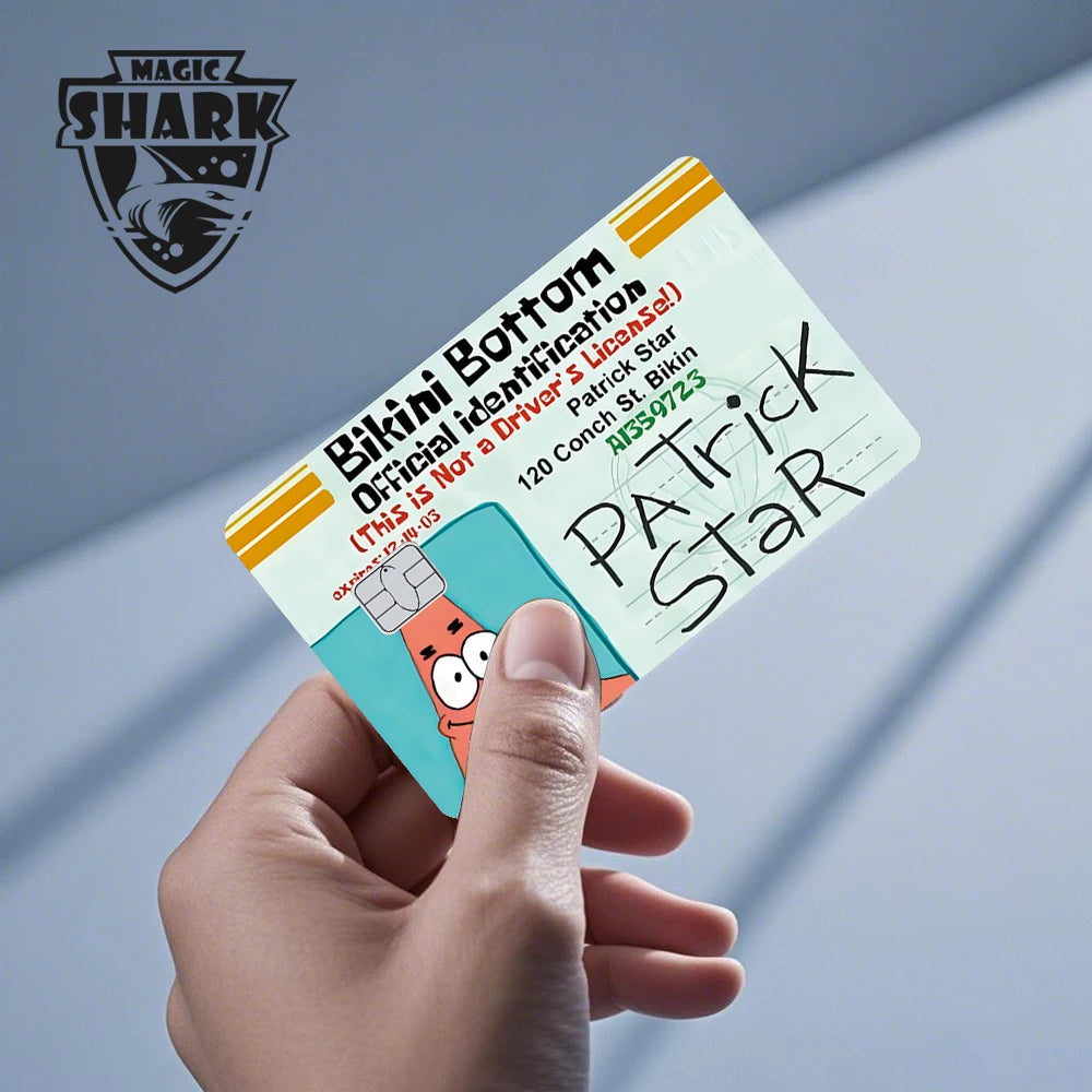 Protect and personalize your debit or credit cards with these adorable Magic Shark matte PVC stickers featuring SpongeBob, Patrick, Star, and Cobra cartoon designs — fun and durable card skins for everyday use!